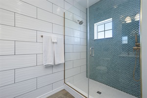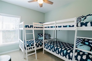All three bedrooms are on the third floor. The master bedroom has a thera-pedic cooling KING bed, ensuite bathroom with a spacious walk-in shower, and double vanity sink. The second bedroom has a comfortable QUEEN size bed. The third bedroom has TWO sets of single BUNK BEDS.