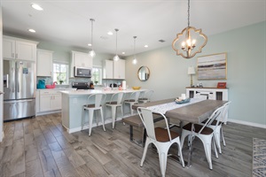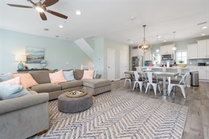 3 Bedrooms • 3 Bathrooms (2 full, 1 half) 3 Baths (2 full, 1 half) • Sleeps 9-12After a fun-filled day at the beach or 18 holes of golf, the villa is designed to entertain your family and friends in the comfy open living area. Enjoy a family game night or share a movie and popcorn on the large sectional couch. The second floor has its own powder room, fully equipped kitchen and an 8' island with bar stools, perfect for preparing your own meals and really feeling at home. The balcony has seating and beautiful views of the preserve and creek.